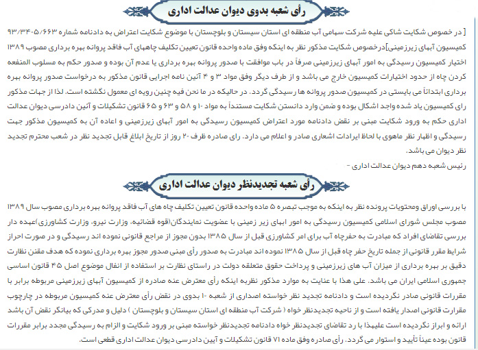اعتراض قانونی | ثبت اعتراض به تصمیم در دیوان عدالت اداری | ظرف ۲۰ روز از تاریخ ابلاغ | دیوان عدالت اداری | ارائه مستندات و استفاده از وکیل متخصص منابع آب توصیه میشود |